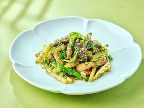 「春笋韭香炒海参」鲜嫩的春笋邂逅翠绿的韭菜ღ★✿,再与软嫩弹牙的海参携手入锅ღ★✿,旺火快炒间ღ★✿,咸鲜滋味充分激发尊龙凯时新版APP首页ღ★✿,春笋的清甜ღ★✿、韭菜的辛香网通中变私服ღ★✿、海参的醇厚相辅相成ღ★✿,尽显春日佳肴的独特魅力ღ★✿。